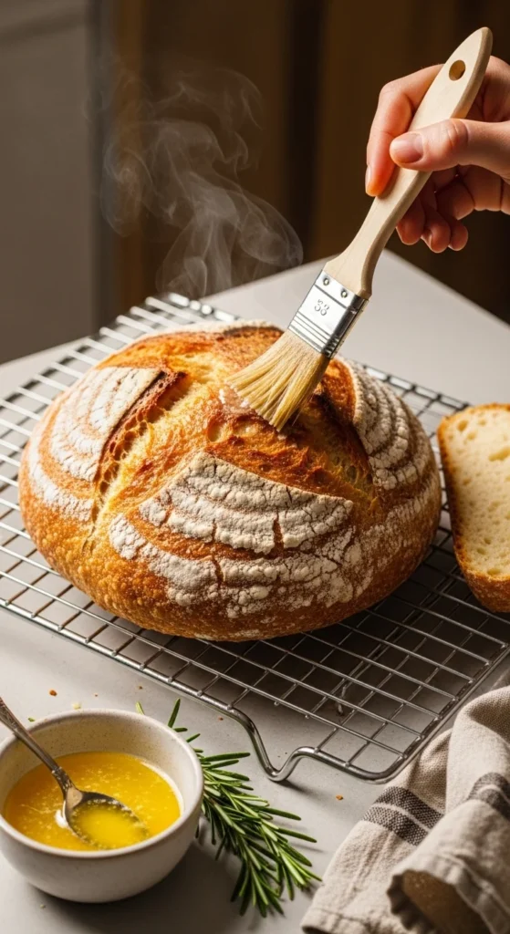 Right after baking, brush the top lightly with butter for a soft, shiny crust.