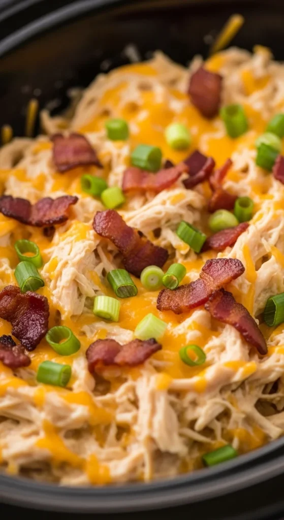 3. Cook 6 hours on low, shred, stir in cheddar and bacon.
