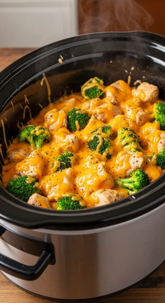 3. Cook 6 hours low, stir in broccoli and cheddar last 30 minutes.