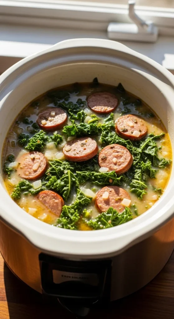 Creamy sausage soup with tender greens.