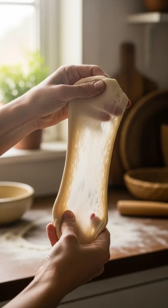 Knead for 8–10 minutes until elastic.