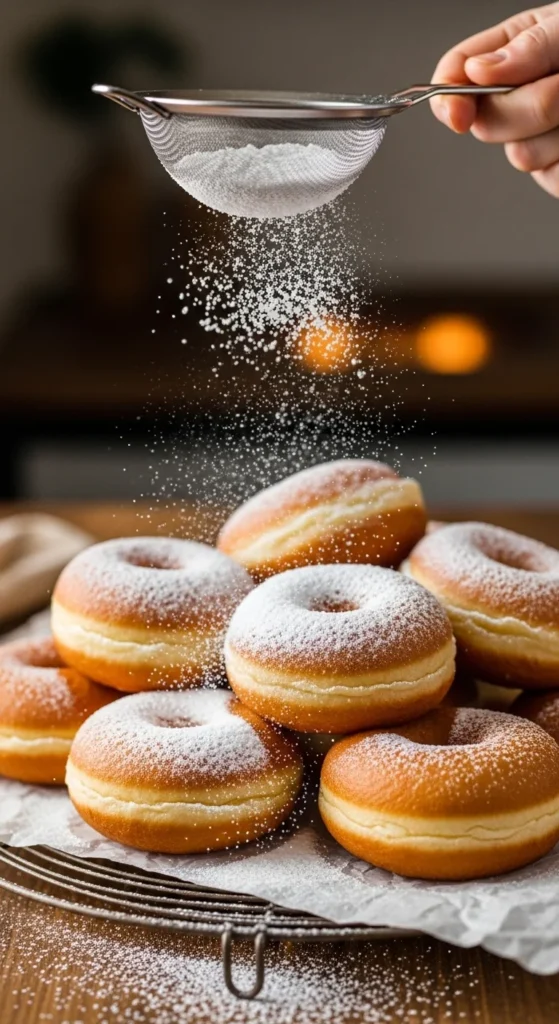 There’s something irresistible about homemade doughnuts. The smell of warm dough frying, the soft cloud-like centers, and that final snowfall of powdered sugar that melts the second it touches the surface—it’s pure kitchen happiness.