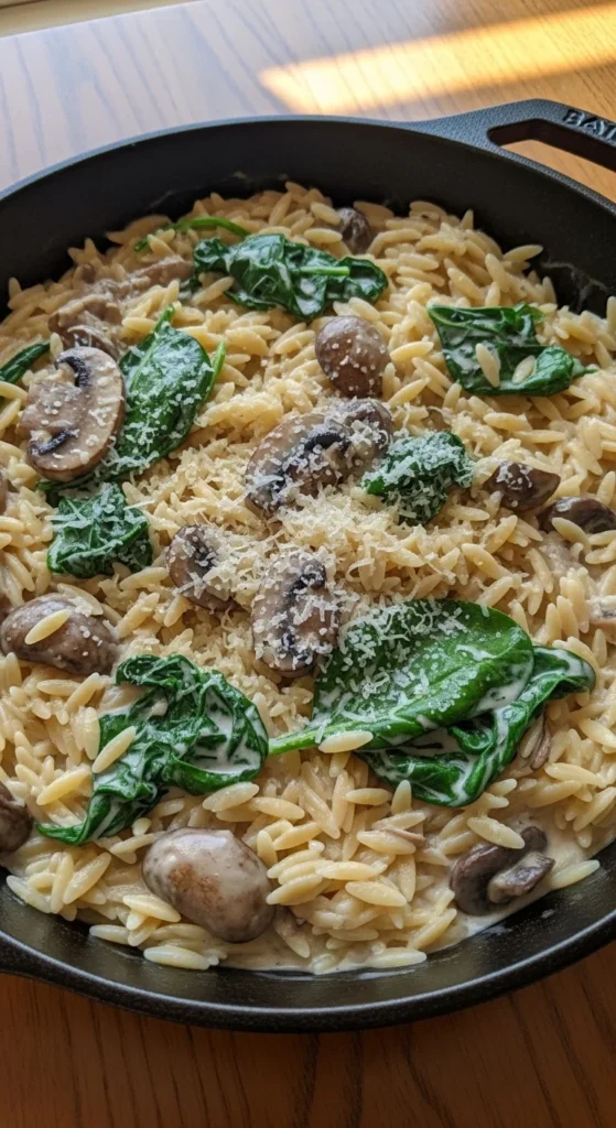 2. Add orzo and broth, simmer 10–12 minutes until tender.