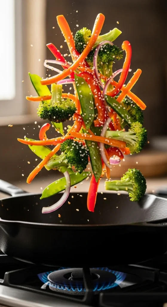 1. Heat oil, stir-fry veggies 6–8 minutes.