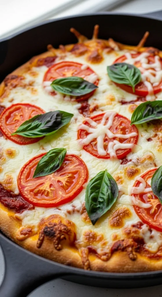 Cheesy, crusty skillet pizza made in one pan.