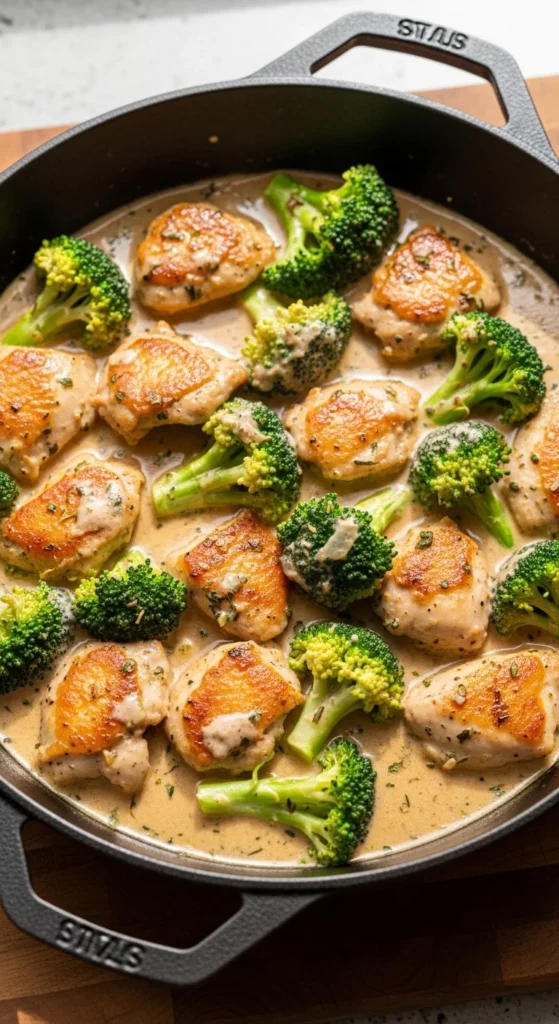 2. Add broccoli and cream, cook 6–8 minutes.