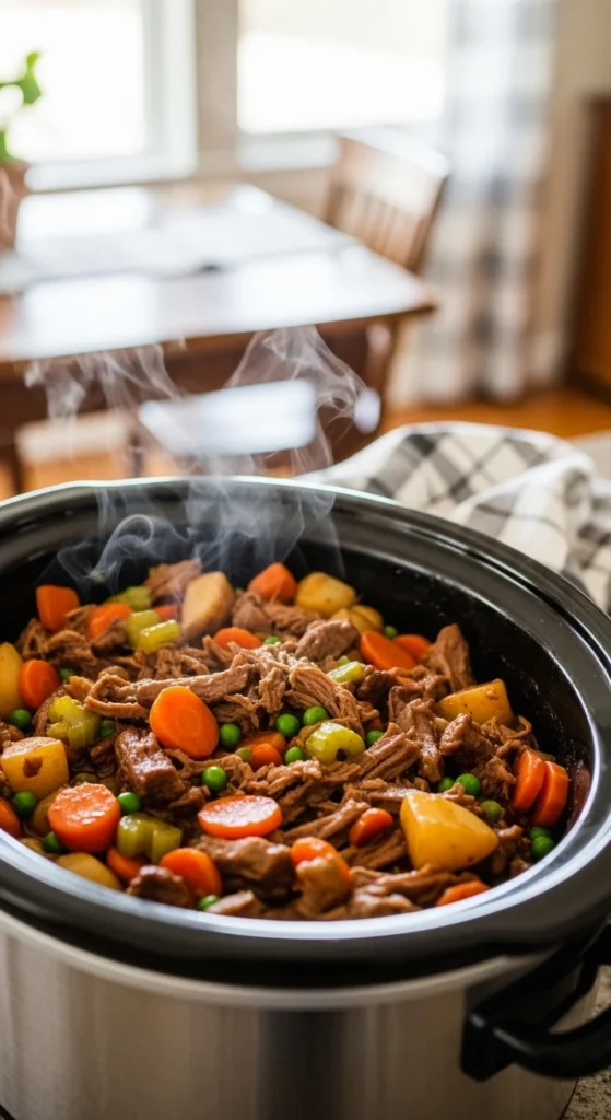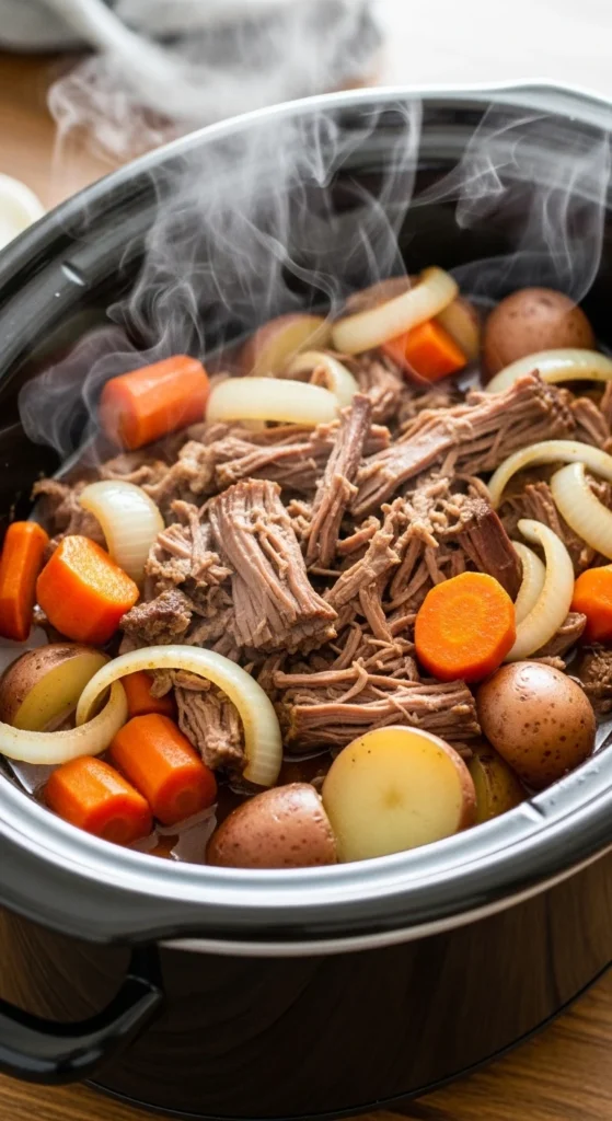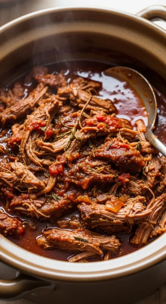 3. Cook low 6–7 hours, shred before serving.