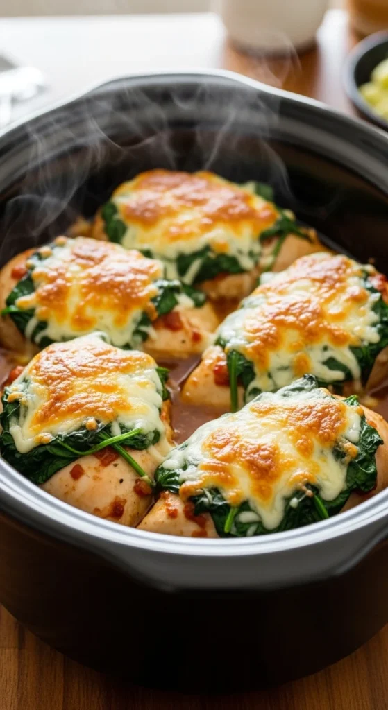 3. Cook low 4–5 hours, add cheese in the last 30 minutes.