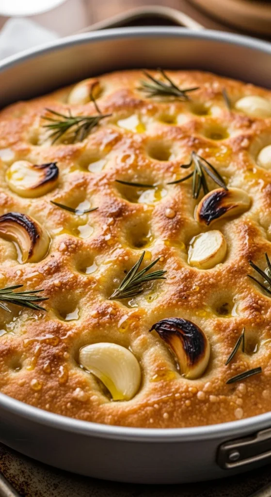 Deep-dish focaccia is one of the most satisfying breads you can make at home. It’s rustic, forgiving, and packed with flavor from garlic confit, olive oil, and slow fermentation.