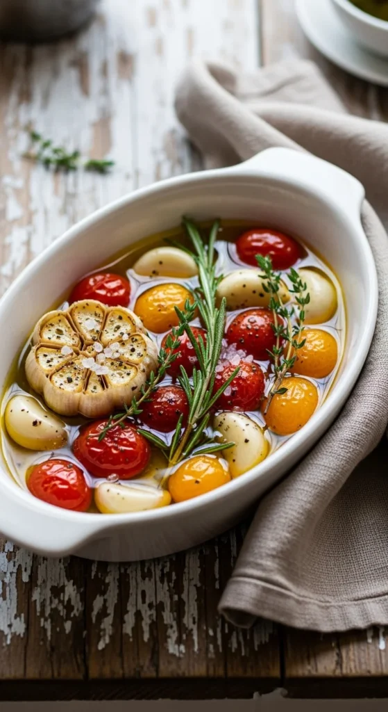 - Garlic confit slowly roasted until sweet and mellow