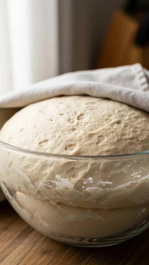 Once kneaded, place your dough in a greased bowl and cover it loosely.