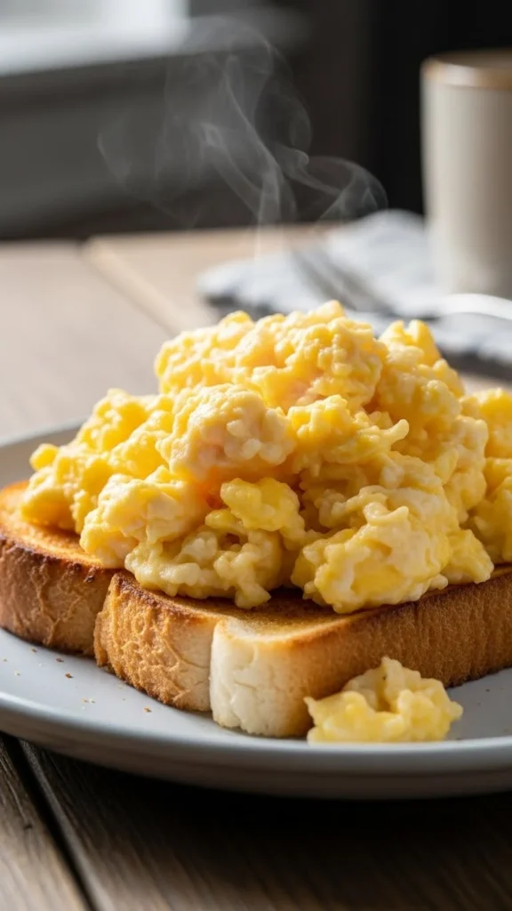 Fluffy scrambled eggs don’t require skill or extra time. They come from gentle heat, simple movement, and knowing when to stop. Once you try this method, rushed mornings feel easier and breakfasts feel better.