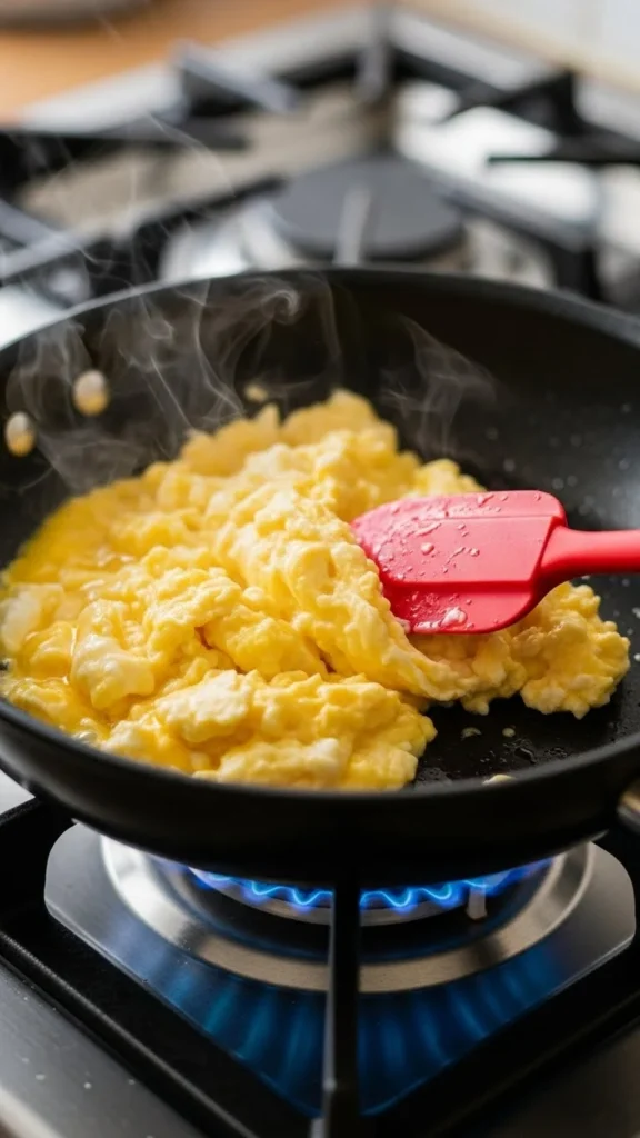 Heat control is where most scrambled eggs go wrong. High heat cooks eggs fast but turns them rubbery.