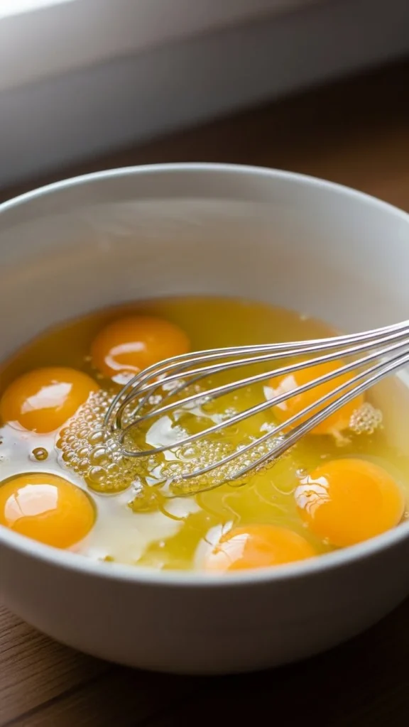 Crack your eggs into a bowl instead of straight into the pan. This gives you control and better texture. Use a fork or whisk and beat just until the yolks and whites come together. Stop there. Overmixing can make eggs flat instead of fluffy.
