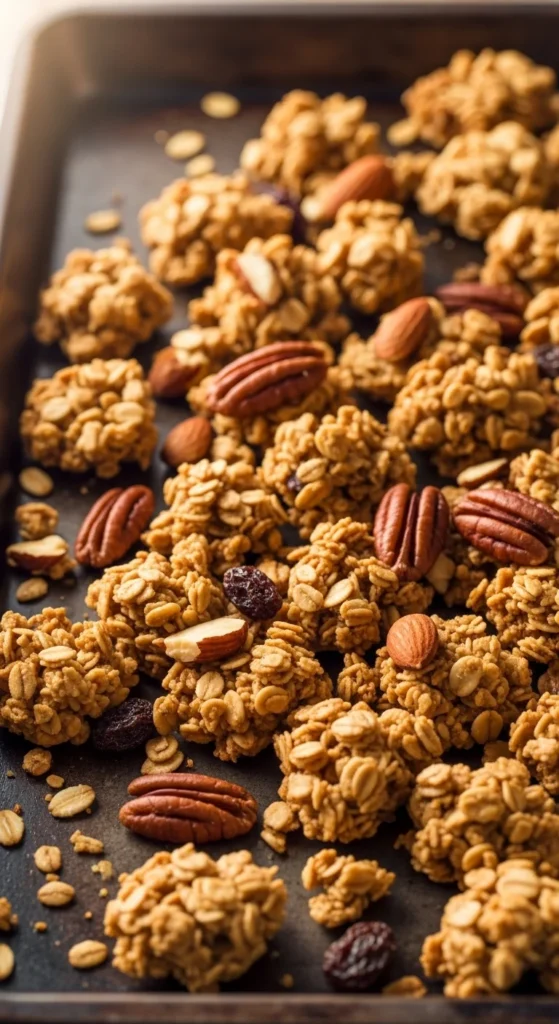 Granola clusters form when ingredients bind together before baking and stay undisturbed while cooking. Many recipes fail because of too much stirring or not enough binding ingredients.