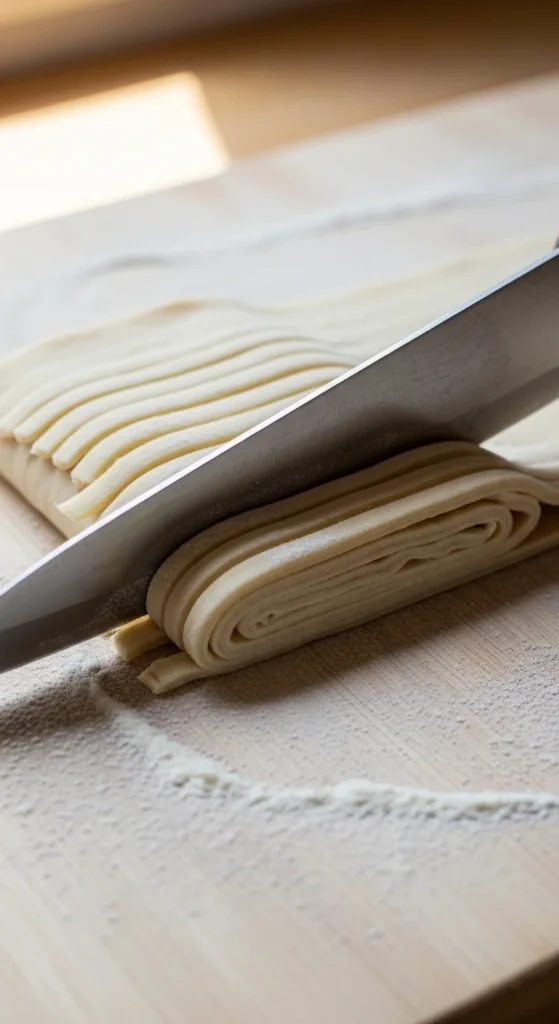 Homemade noodles don’t require special machines or complicated techniques. A bowl, flour, and a rolling pin are enough to create a comforting meal from scratch. Once you try the fold-and-cut method, it quickly becomes second nature.