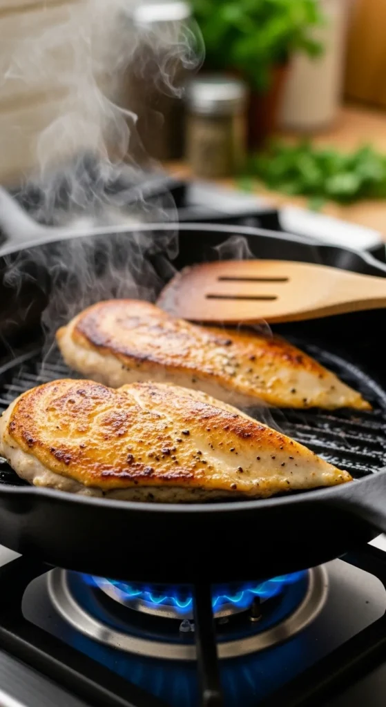 - Sear each chicken breast 2–3 minutes per side until golden.