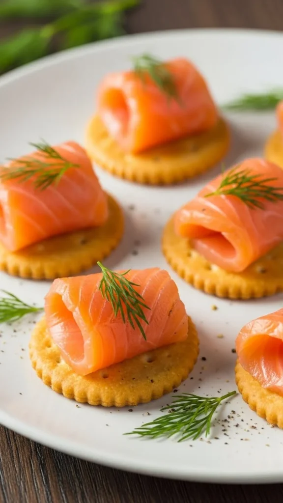 *Ingredients:* Crackers, cream cheese, salmon, dill