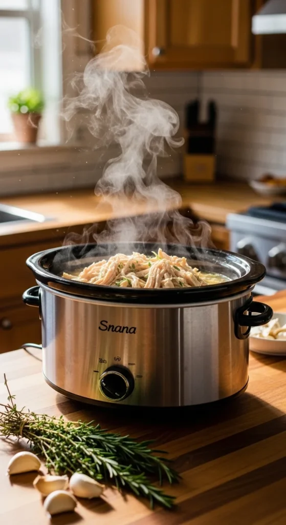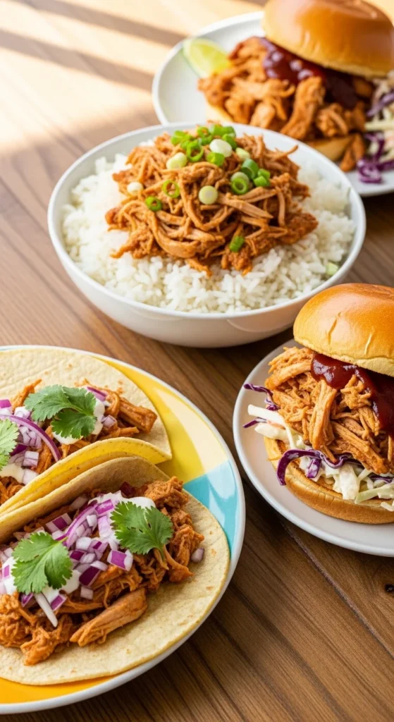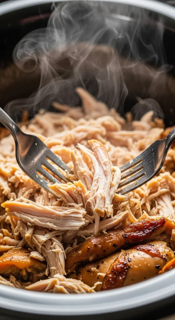 The best part? You can set it, walk away, and come back to perfectly cooked chicken that’s ready to transform into multiple easy meals.