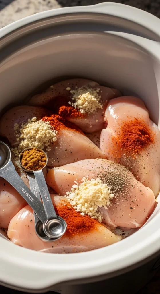 - Sear chicken for 2 minutes per side before slow cooking for added flavor