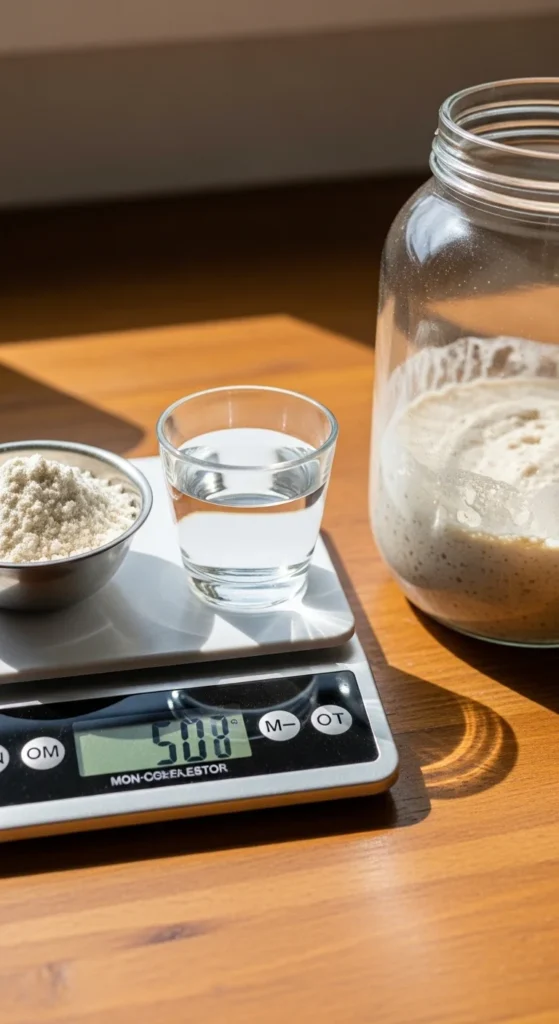 Why the digital scale? Because sourdough thrives on the 1:1:1 feeding ratio:
