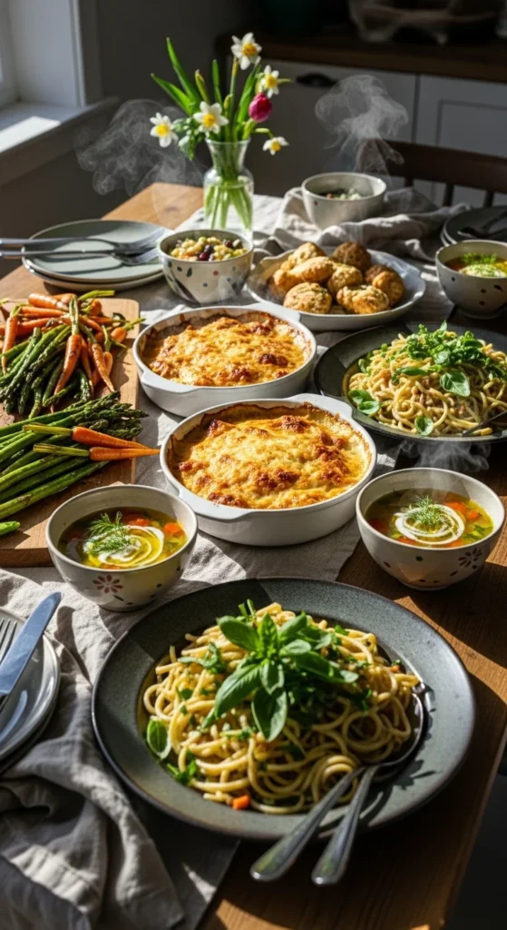 Spring cooking often leans lighter, yet comfort still matters. These recipes keep that cozy, familiar style while leaning into seasonal produce, brighter colors, and simple methods. Each dish fits everyday meals and relaxed gatherings without feeling heavy or fussy.