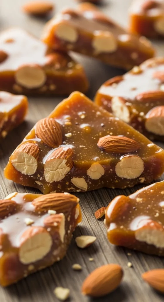 [Image Prompt: Toffee shards with almonds.]