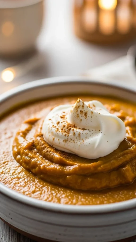 Pumpkin puree thickens milk-based pudding naturally. Add cinnamon.