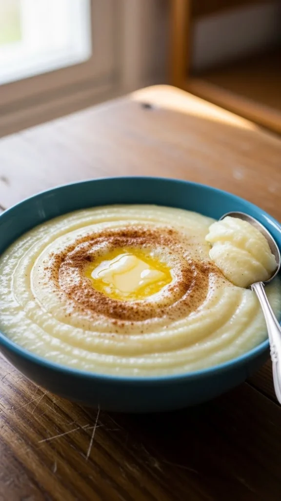 Cinnamon or vanilla adds gentle flavor. This recipe stretches small amounts into filling portions. Great for using leftovers and keeping costs low. Serve warm or chilled.