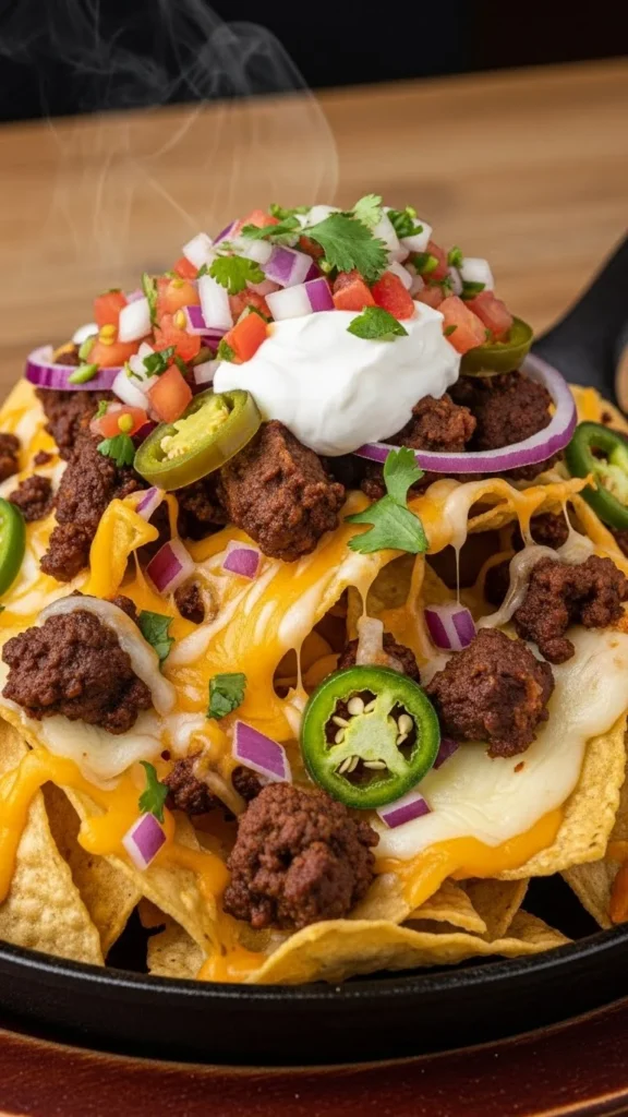 - Layer chips, beef, cheese.