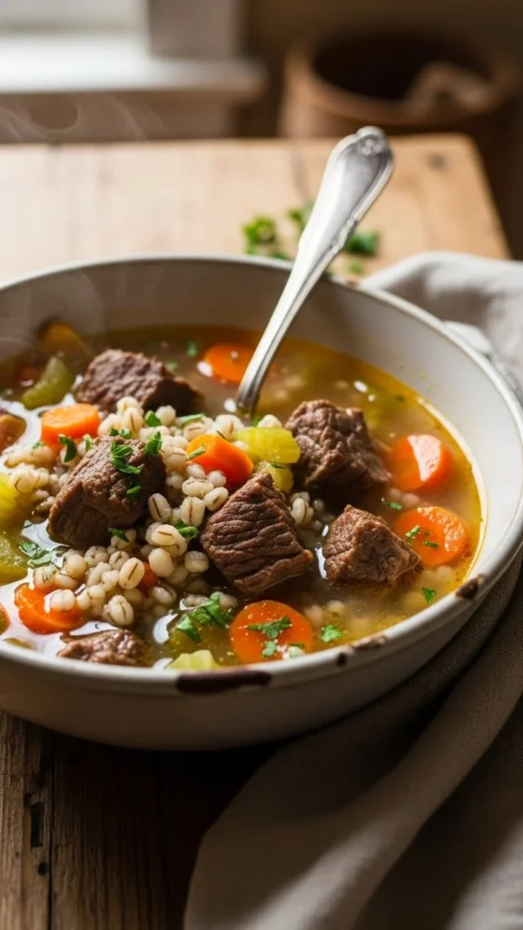 5) Cozy Beef Barley Soup
